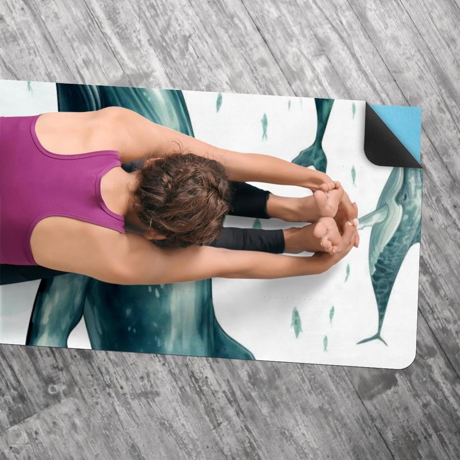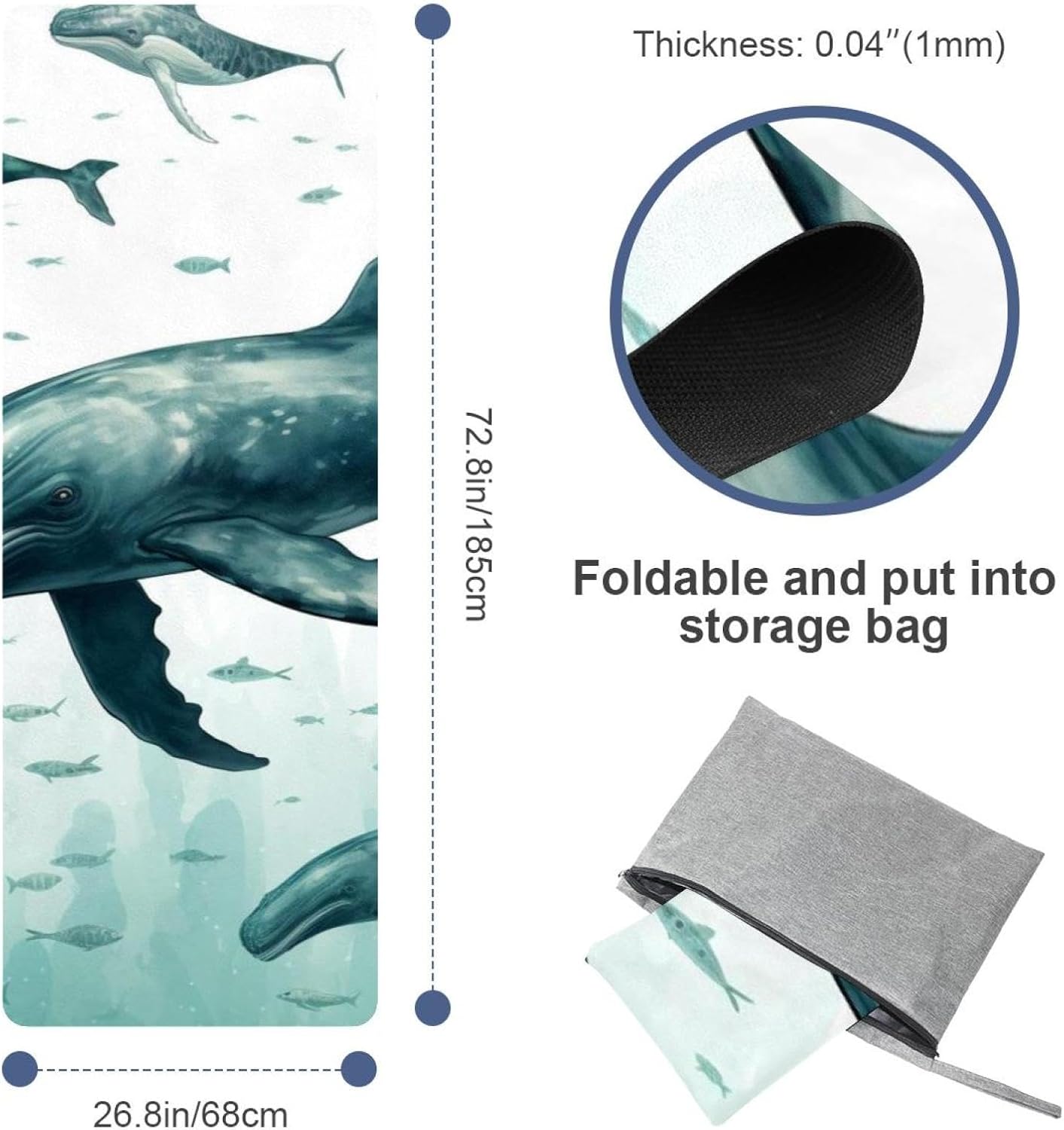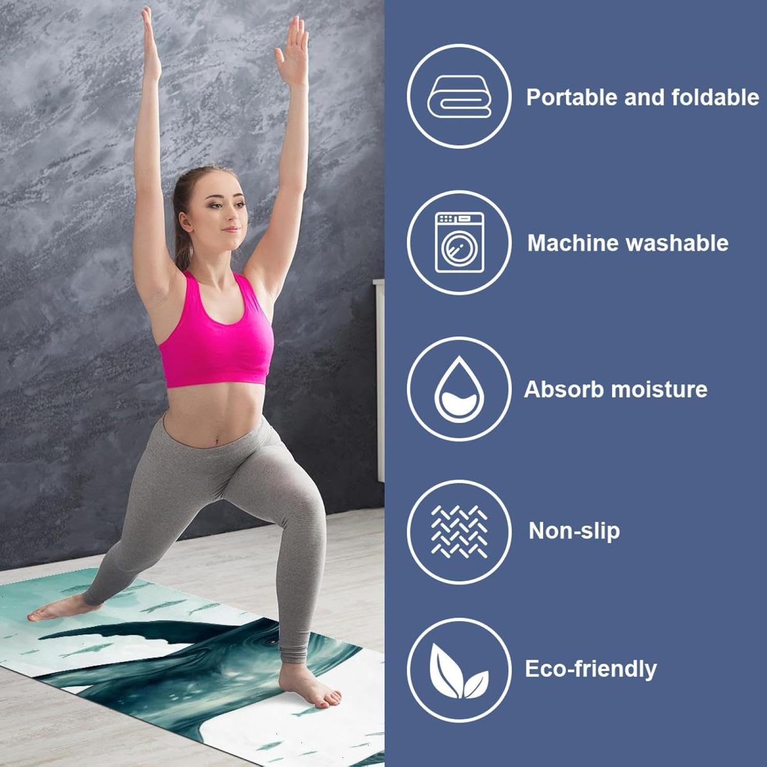 Yoga Towel, Whale Sea Pattern Non Slip Sweat Absorbent Hot Yoga Mat Towel for Hot Yoga, Pilates and Fitness - 72.8" x 26.8"