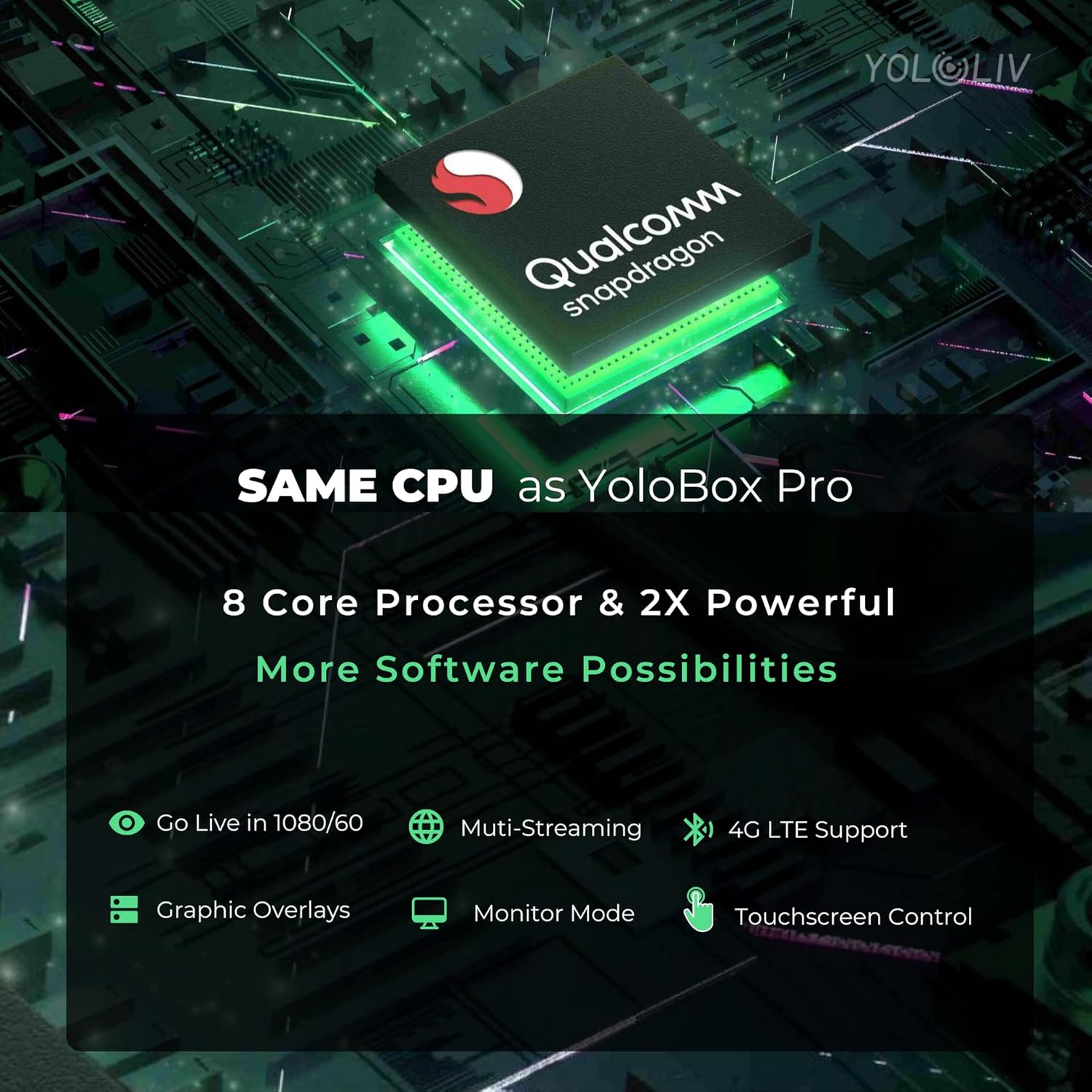 Stream From AnywherePortable, reliable and affordable. Live on the go.Mini, Mobile, MightyYoloBox Mini is a super portable live streaming encoder, monitor and recorder that is capable of incorporating many powerful features for high end work! As the name suggests, it's very small compared to almost all other live streaming solutions. You can fit it in your pocket, especially perfect for live events that require high mobility. If you're looking for a mini but mighty live streaming solution for mobile live streaming needs, YoloBox Mini is your best choice.Go Live in 1080/60Anybody can stream live online, but not everyone can make it professional. Bring your live productions to the next level with broadcast quality 1080p60 video.Stream to Multiple DestinationsDistribute your content to more viewers and streamline your workflow by simultaneously streaming to your favorite platforms, including Facebook, Youtube, Twitch or others through RTMP.Graphic OverlaysMake your video productions stand out by adding custom scoreboards, text, logos, countdown timer and more. Creating proper stream graphics help you convey your brand and keep your audiences engaged.Monitor ModeUtilize the device even when you are not live streaming. Record, switch, add overlays and transitions to level up your video production efficiency.4G LTE SupportStream over all available networks from Ethernet, Wi-Fi, 4G LTE modems and hotspots. Making sure you can always live stream with confidence even if you're out with no Ethernet or Wi-Fi around.Why YoloBox MiniSmall in size, big in capabilities.Live Stream Wherever You GoThe compact encoder, monitor and recorder for live streaming on-the-go. A small-sized, cost-effective and reliable HEVC encoder for transmitting high-quality video from anywhere.Start Streaming Within SecondsA user-friendly live streaming solution that makes it accessible to people of all skill levels. Just plug in your camera and go live at the tap of a button.