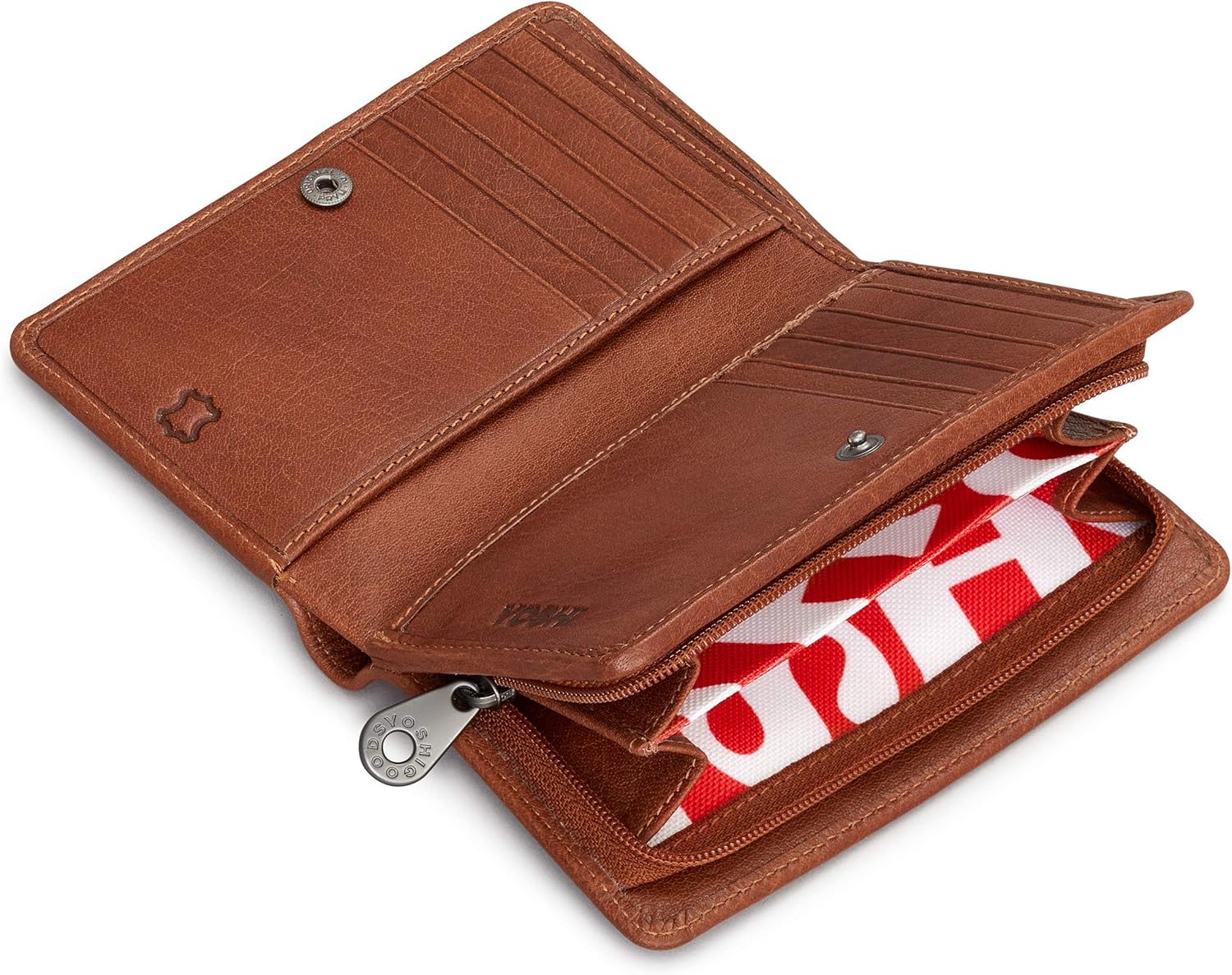 Playwright. Poet. Literary Genius. William Shakespeare - a writer like no other. His themes - love, greed, power, all still so relevant to a contemporary audience. With this leather purse for women we honour this legacy with the detailed appliques on the front featuring works such as A Midsummer Night's Dream and Hamlet. This womens flap over leather purse has RFID Protection and fits coins, cards, and notes. This purse for women features RFID blocking technology to help prevent unauthorised scanning.