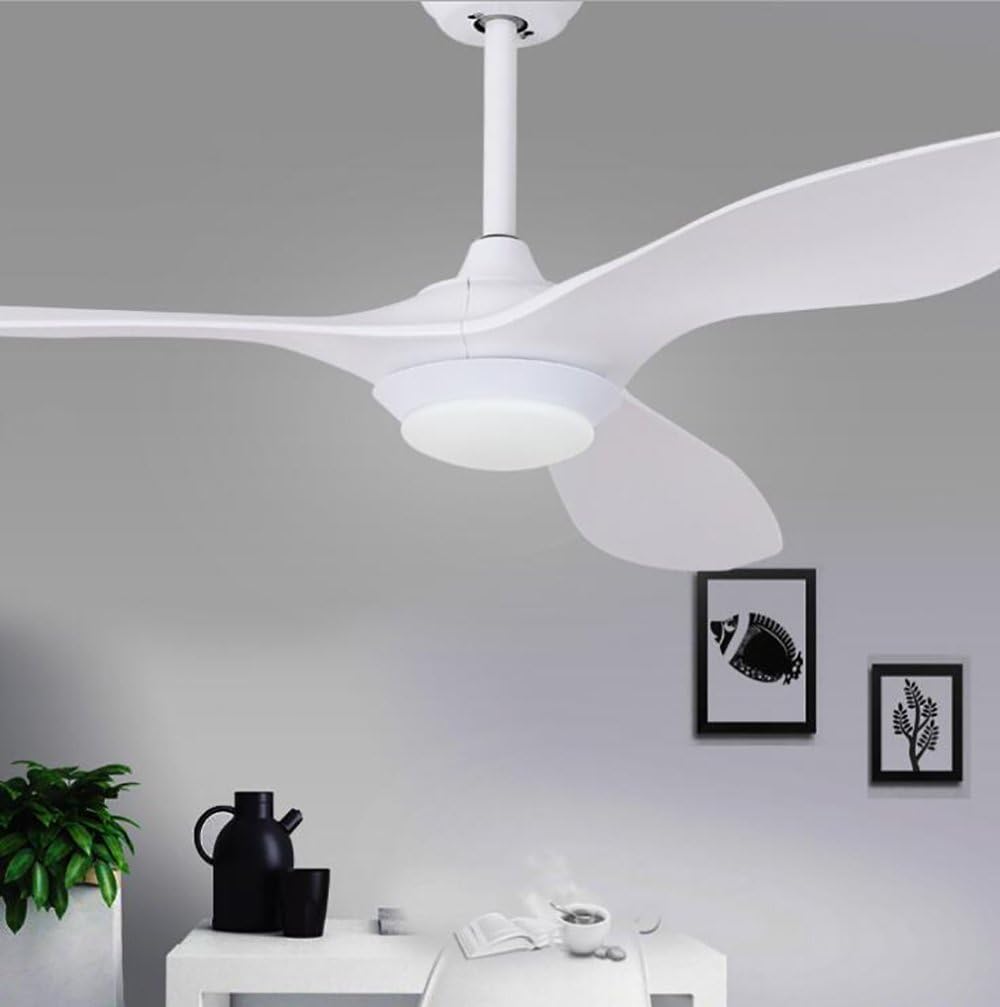 YUEGOO Ceiling Fans with Lamps,Led Imitation Leaf Abs Fan Chandelier Nordic Restaurant Living Room Bedroom Home Fan Light/White