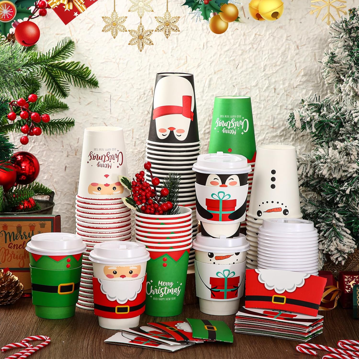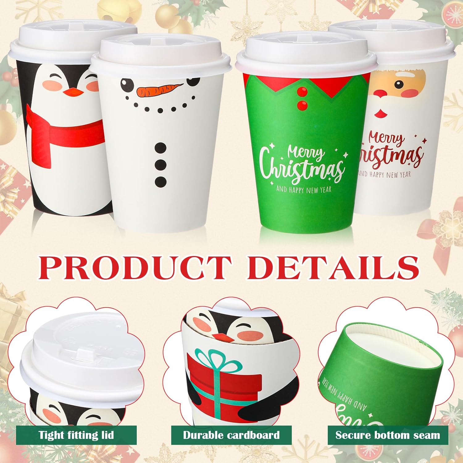 Features:Holiday disposable coffee cups with lids are ideal for decorating your Christmas parties and winter themed events. They not only treat your guests well but also decorate the table well.Christmas coffee cups are available in 4 different designs that are classic and beautiful to suit your personal preferences.Specifications:Material: pure wood pulp paper, cardboardColor: as picture shownSize:Cup: 4.33 x 3.5 x 2.28 inch/ 11 x 8.9 x 5.8 cmLid: 3.54 inch/ 9 cmSleeve: 5.11 x 2.4 inch/ 13 x 6 cmPackage includes:100 x Disposable Christmas cups100 x White lids100 x Christmas cup sleevesNotes:Manual measurement, please allow slight errors on size.The color may exist a slight difference due to different screen displays.