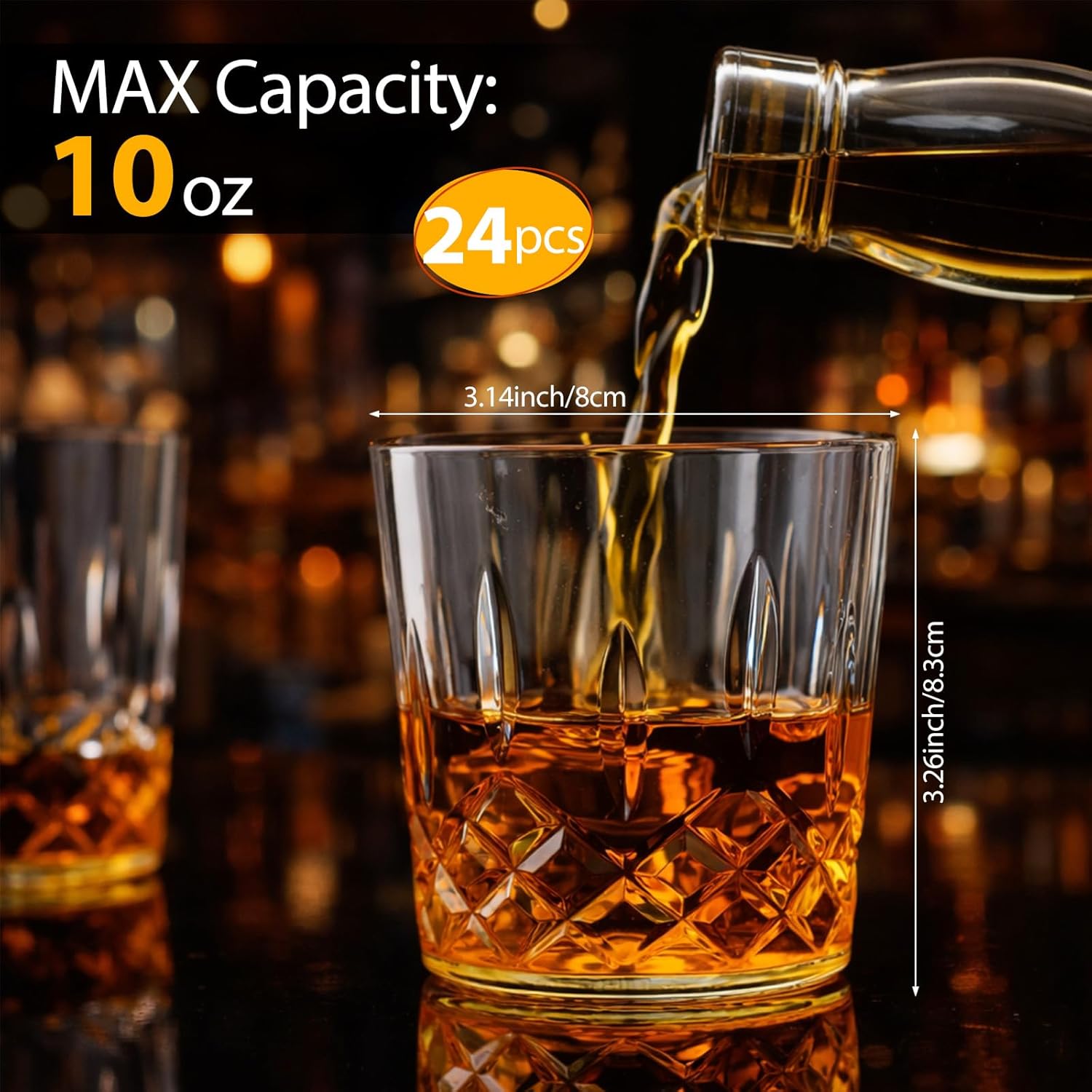 Features: Safe and Lightweight: These plastic whiskey glasses are lightweight, making them easy to handle and carry. Their lightweight nature also reduces the risk of accidents, especially in busy settings. Ideal for social gatherings or parties where glassware might not be practical. Versatile and Stylish: Whether you're hosting a casual get-together or a more formal gathering, these plastic whiskey glasses offer a modern and stylish touch. Their sleek and minimalist design makes them suitable for various occasions, from BBQs to cocktail parties. Specifications: Material: PS plastic Color: clear Size: about 8 x 8.3 cm/3.14 x 3.26 inches Capacity: 10 oz Package includes: 24 x Plastic Whiskey Glasses Notes: Manual measurement, please allow slight errors on size. The color may exist a slight difference due to different screen displays.