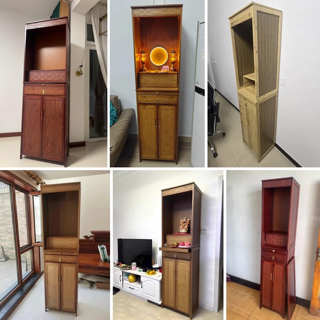 Welcome to YVYKFZD store:- The sacrificial table is a sacred reminder, a space for spiritual encounters, or a focus for meditation, and is a powerful tool for people of all faiths. Space-saving dimensions make it ideal for small spaces while providing ample surface area for displays and offerings- The altar cabinet is ideal for displaying all kinds of precious items, such as Buddha statues, collectibles, antiques and statues. Note: This product is a Buddhist platform only, other accessories such as Buddha statues are not includedSpecification:● Name: Personal shrine altar table, meditation storage table, day of the dead altar stand, buddha statue offering table, pet ashes house pooja table, home incense table buddhist shrine prayer stand riser● Material: Bamboo● Color: Brown, wood color, pear color● Size: 40x38x185cm/15.7"x14.9"x72.8", 50x38x185cm/19.6"x14.9"x72.8", 60x38x185cm/23.6"x14.9"x72.8"● Purpose: Can be used for prayer, incense burning, divination, offering, meditation, worship, ancestral hall, temple, worship, sacrificePackage Includes:1 * Personal Shrine Altar RackNote:1. Please check the size before buying. Due to manual measurement, an error of 0-3cm will occur. Hope for understanding2. The product photos do not contain items other than the product3. Please note that due to different monitors, there may be slight color difference, please understand