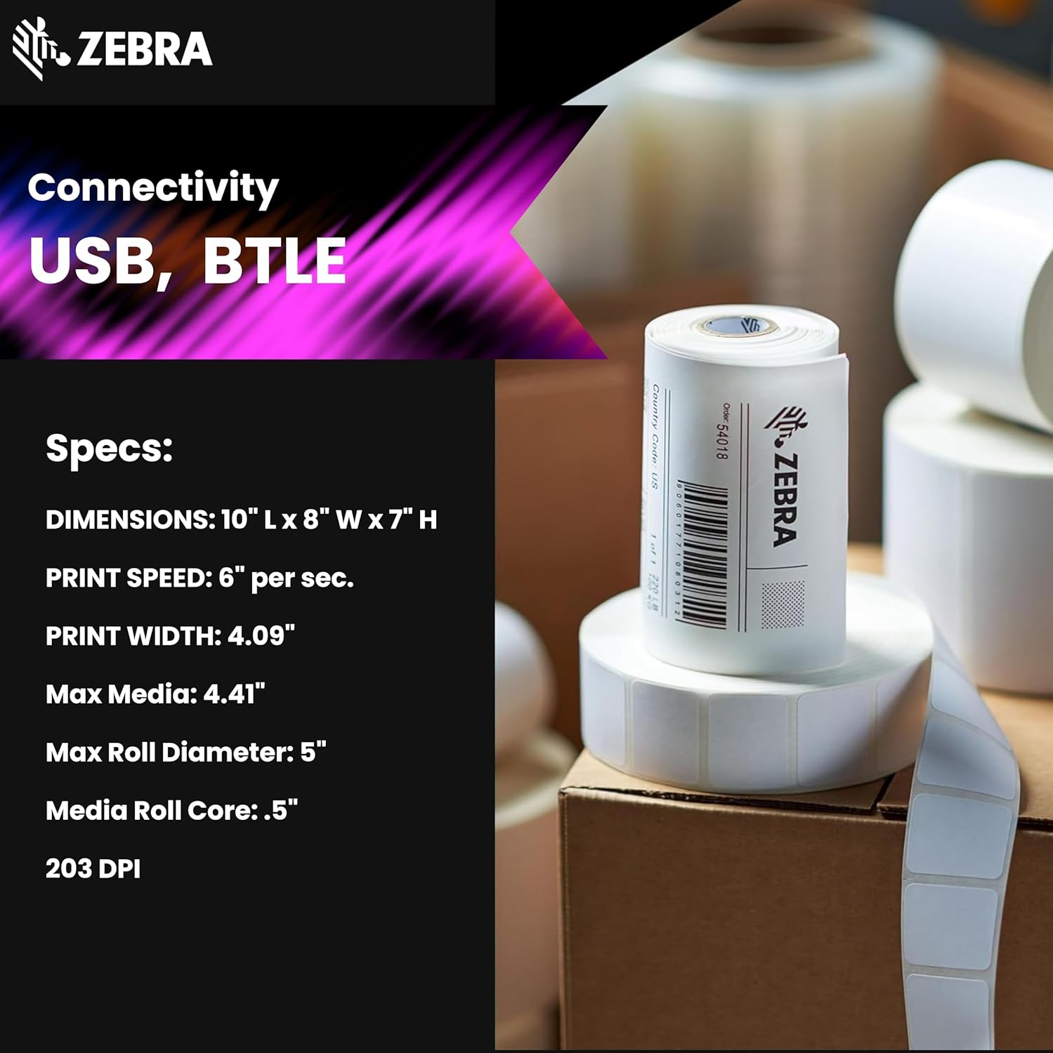 Zebra ZD421 Thermal Shipping Label Printer 4"| 203 DPI | No Ink Required | 4x6 | USB, BT5, Tap to Print NFC | 2 Year Warranty | ZD4A042-301M00EZ