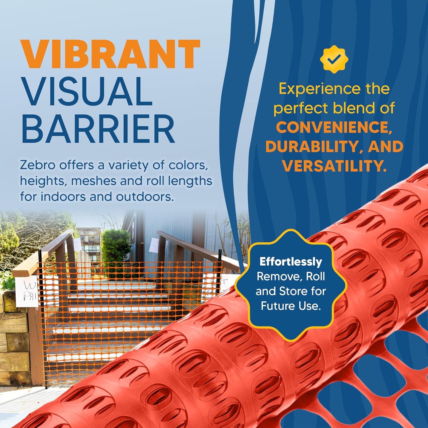 Zebro temporary and semi permanent fencing, netting, privacy and barrier products are the perfect option for homeowners, contractors and business professionals who need safe, reliable and easy ways to set up fencing and netting solutions. We have a huge variety of high density plastic fencing, woven poly mesh netting and mesh privacy barriers available in many colors and convenient size rolls. FEATURES & BENEFITS: Easy Install Cut to Size Rust and Weather Resistant Multiple Colors Lightweight and Flexible Universal Application Affordable Multipurpose Indoor or Outdoor Options HIGH DENSITY PLASTICS Many of our outdoor animal resistant and construction fencing are made from high density plastic. Because our netting doesn’t have metal cores, it’s lightweight and doesn’t conduct electricity. Cut it to size with standard scissors, utility knives or box cutters. Use it for temporary projects or seasonal planting and save it for later. PRIVACY MESH Our privacy mesh netting barriers are great for outdoor patio, balcony, porch and deck spaces where you want to provide shade and privacy from prying eyes. The mesh netting is reinforced at the seems to withstand heavy winds and rain. The UV resistant design helps your mesh netting last year round. POLY KNIT MESH We also offer New York City Code 61 and OSHA compliant high visibility safety debris netting for use on open face buildings, construction and scaffolding. The high utility design won’t fray or unravel even after cutting.