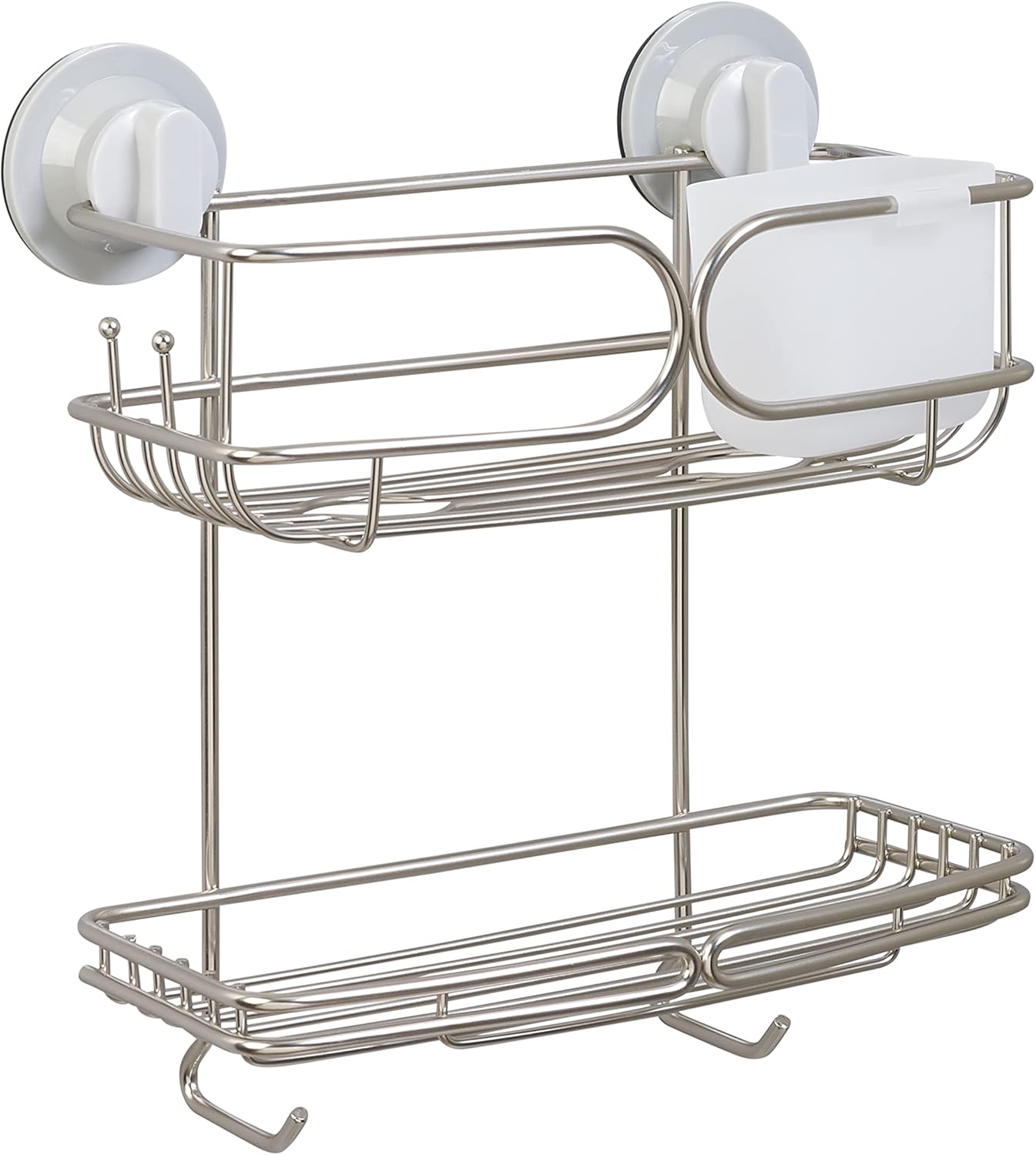 | Included Components | over the shower head caddy bathroom bath storage organization rack no tools rust proof resistant wire frame shelf shelves shelving hook razor holder non slip suction cup soap dish cup stainless steel |