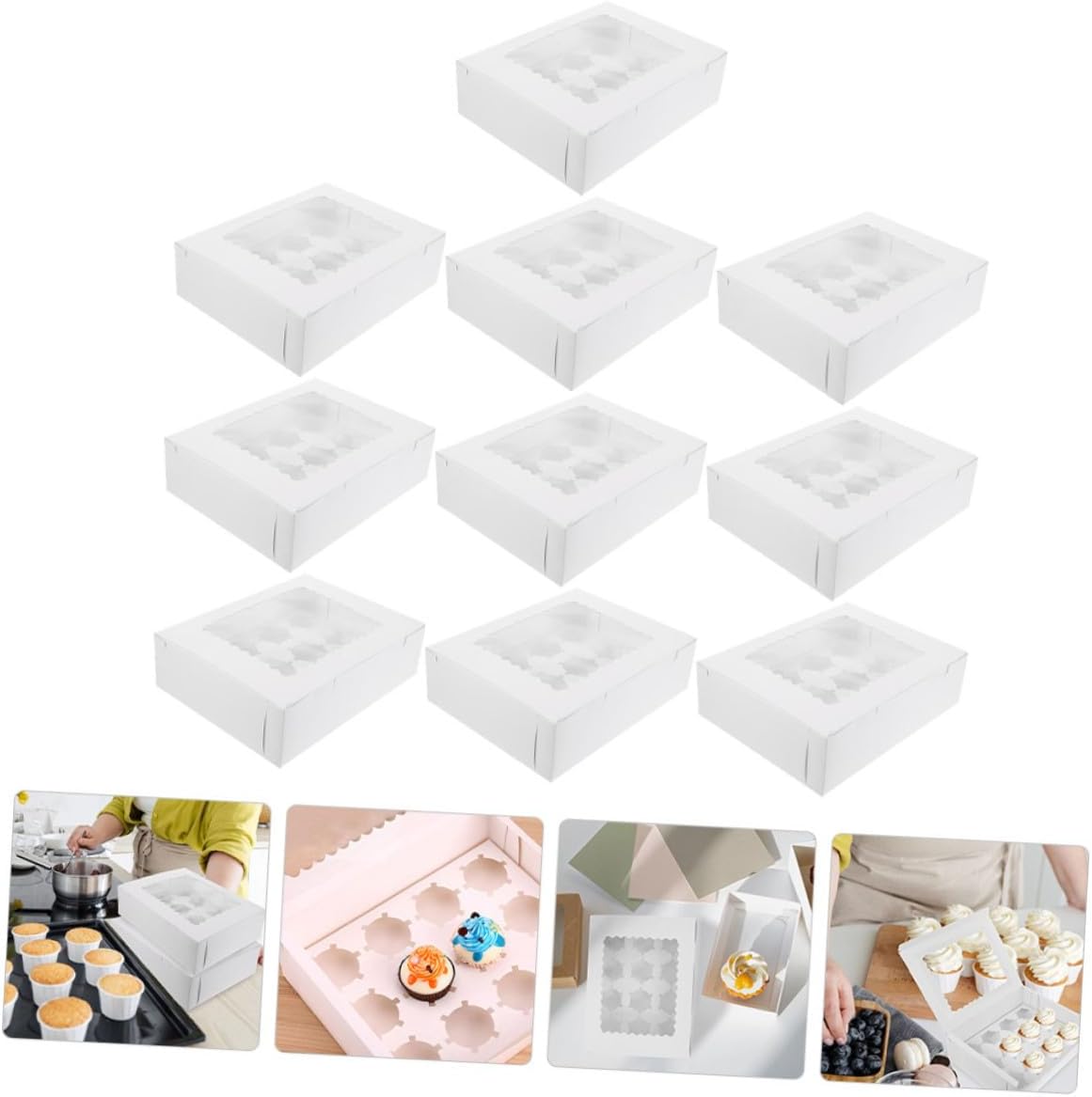 Package List 10 x Baking Packing Boxes Features -Color: White -Product Info:Cupcake packaging box -Material: Paper -Size: 32.50X25.00X9.00cm/12.77X9.82X3.54in -It has a simple design, but very practical in use, giving you a small cake boxes. -Made of sanitary and safe material, you can use them with confidence. It also can help you . -Very suitable for bakery, grocery store, family use or catering where the egg tart needs to be transported to the event place cupcake carrier. -You can use it to pack the egg tarts, cakes, cookies and other dessert, very versatile and practical cake boxes. -Can be used as a to your friends, family and co-worker if they are looking for egg tart packing box small bakery boxes.Goods Descriptionmuffin cases This item is an egg tart packaging box.dessert boxes Suitable for storing and packing egg tarts! Using premium paper material, healthy and safe.cupcake containers Because of the transparent window design, your guests will be able to enjoy a great view of the entire product!