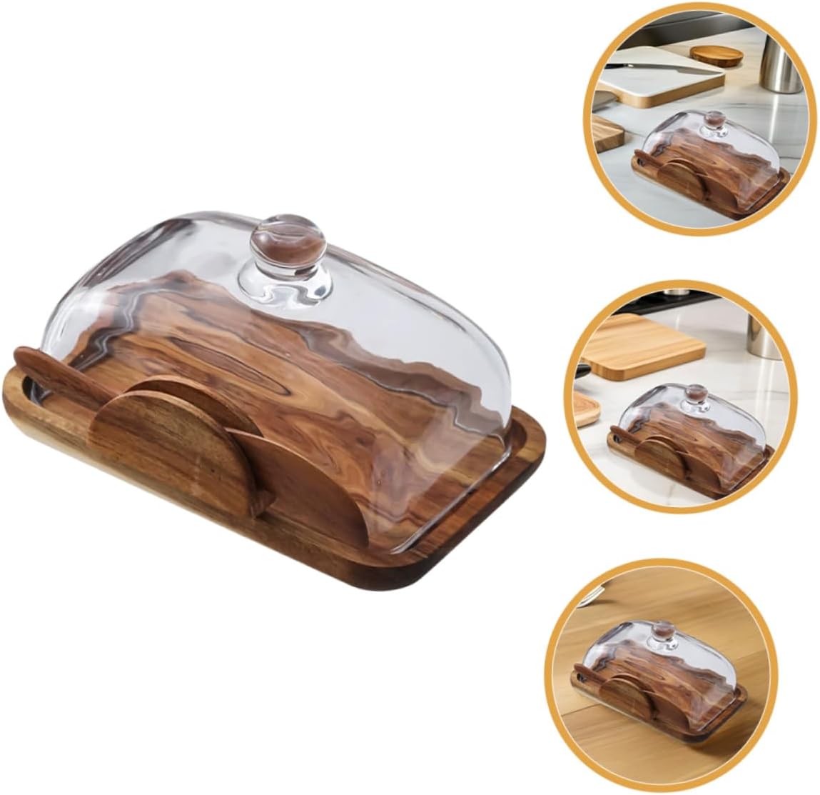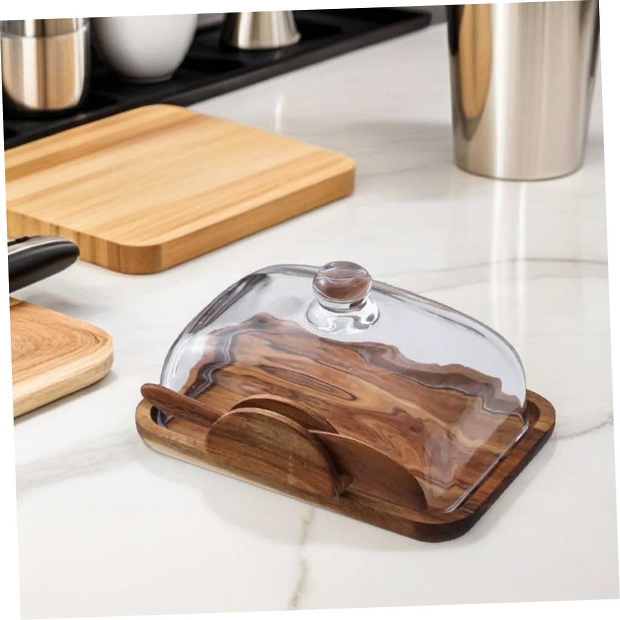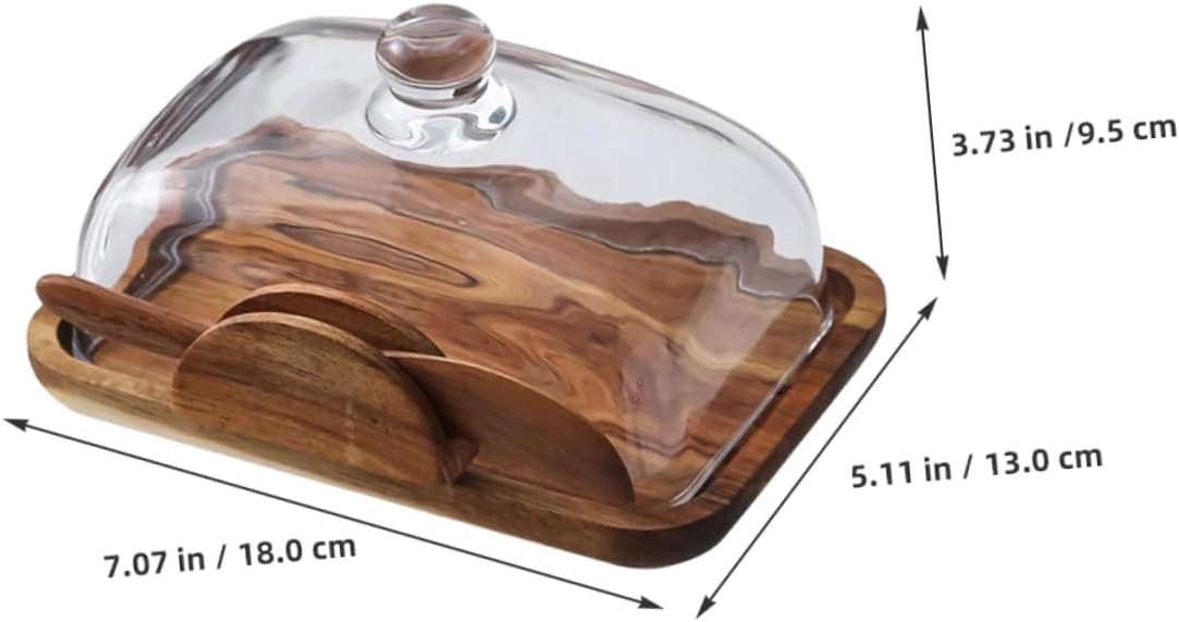 Package List 1 x Butter Dish with Lid Characteristics -Versatile storage solution: designed to store not just butter and cheese, but also snacks and desserts, this box meets a variety of storage needs in one elegant package bread keeper for homemade bread. -Color:Coffee cheese container for refrigerator -Material:Wood,glass bread saver -Easy maintenance: the wood and glass components are easily separable, making cleaning and ensuring the product remains in excellent condition butter container. -Size:18.00X13.00X9.50cm/7.07X5.11X3.73in butter holder with lid - wooden craftsmanship: this butter box is crafted from wood, adding a touch of natural beauty to your kitchen and enhancing its overall warmth fruit serving tray. -Stylish and functional: this butter box is both a practical kitchen tool and a decorative piece, enhancing your living space and making it an ideal present for any occasion wood butter dish. - glass dust cover: the glass cover isolates your food, keeping it fresh and protected, making it suitable for both daily use and special occasions bread boxes for kitchen counter.Goods Informationbread keeper The glass dust cover that your food stays clean and protected, while the wooden base provides a sturdy and attractive platform.cheese container for everyday use or special occasions, this versatile container adds a rustic touch to your kitchen and keeps your favorite items neatly organized.cream cheese container Keep your butter, cheese, and snacks fresh with this stylish wooden storage box
