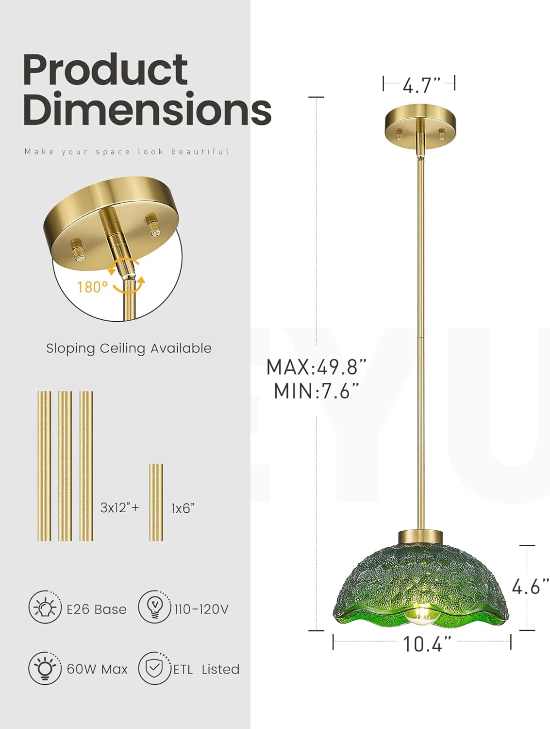 | Color | Brushed Gold + Green Glass |