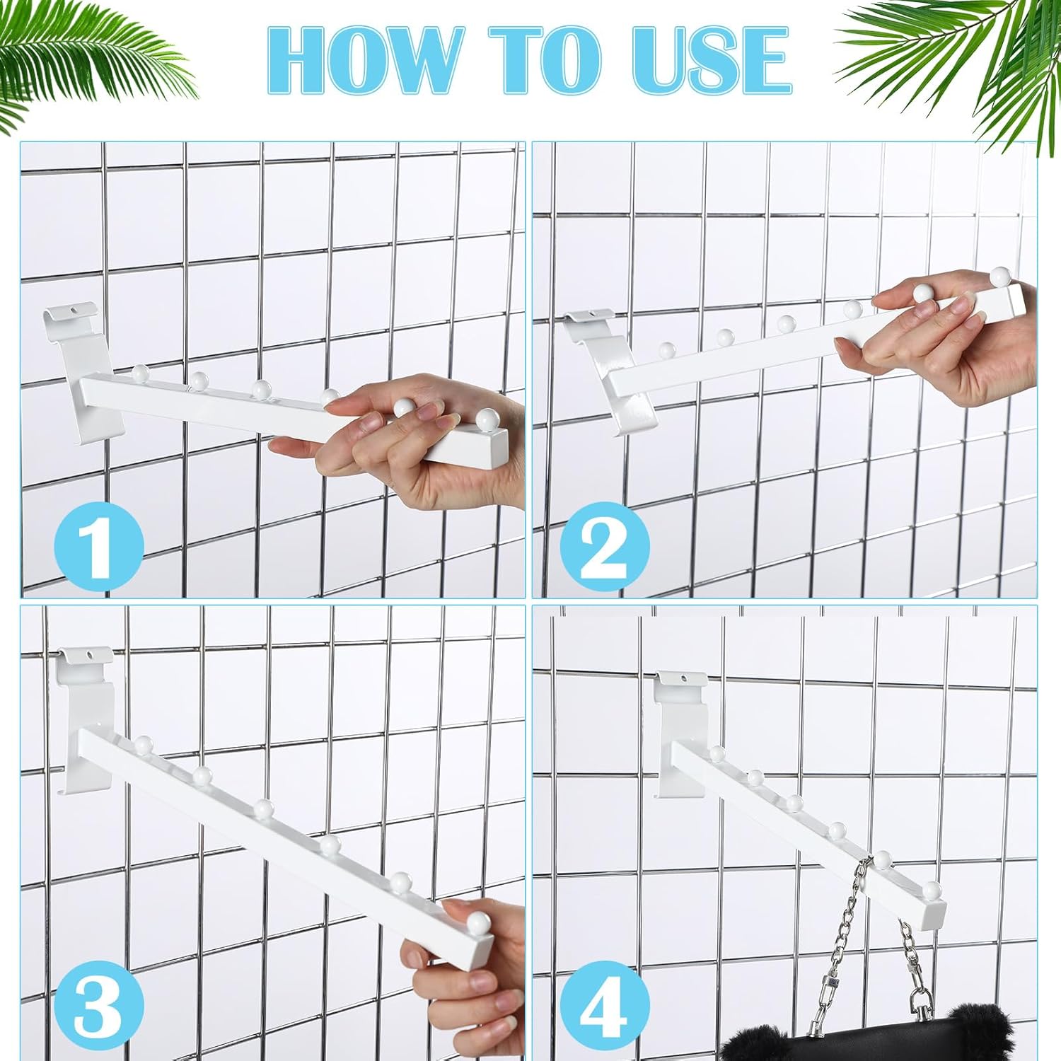 Features: Well organize your things: The wall hanger is simple but elegant, can meet your daily and replacement needs, can better display your stuff and keep things organized, helping you sort things. Practical gift choice: These gridwall hooks can be applied as a practical gift for your friends and family members, and they will be happy and surprised to receive these gifts. Specifications: Main material: metal Main color: white Size: Length: approx. 12 inches Package includes: 10 x Grid wall hangers Notes: Manual measurement, please allow slight errors on size. The color may exist a slight difference due to different screen displays. Please note the size before purchasing.