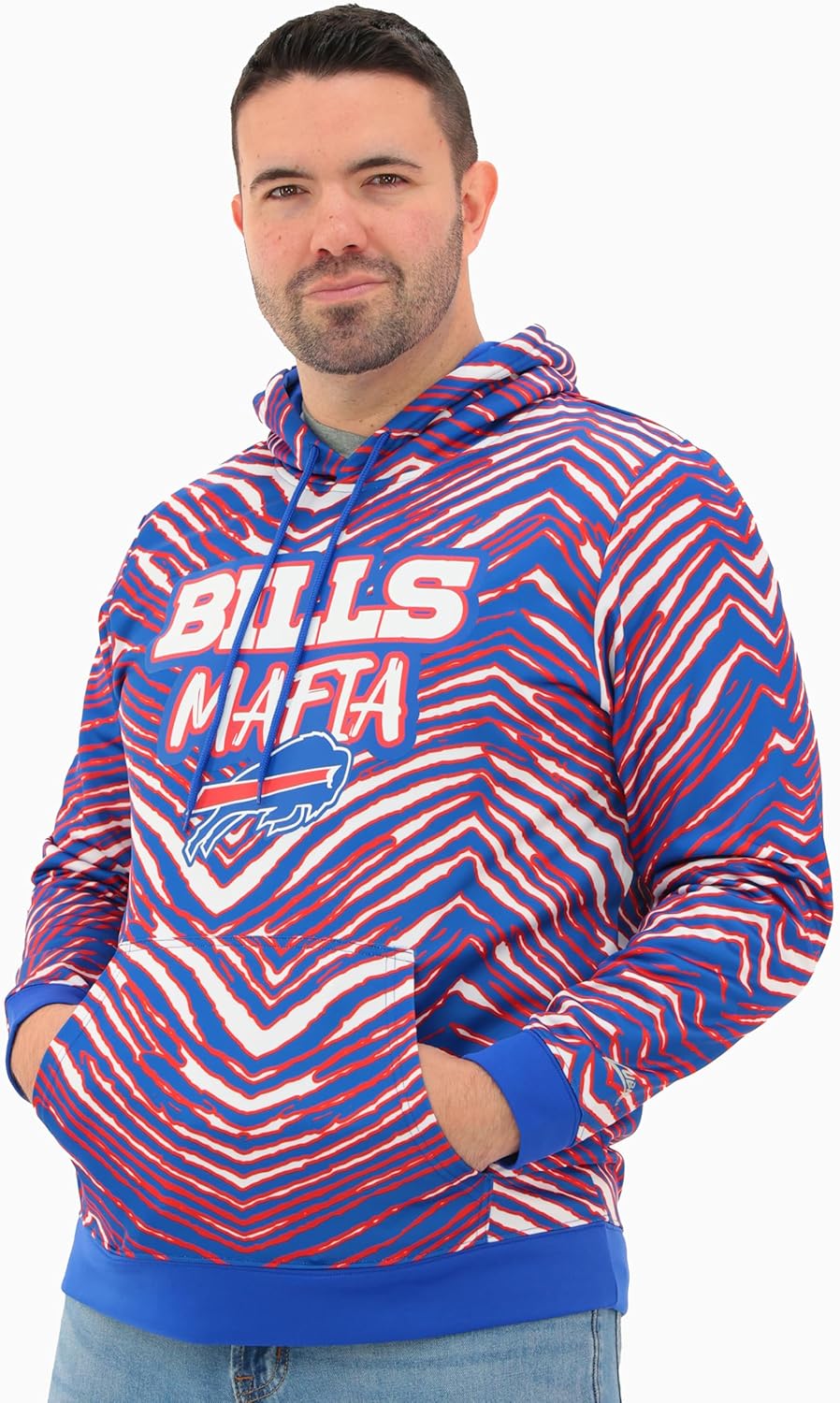 Step into the world of NFL fandom with the Zubaz NFL Men's Buffalo Bills Mafia Royal Blue Fleece Hoodie with Zebra Print Accents. Perfect for cooler weather, game days, or making a statement wherever you go, this hoodie embodies comfort, style, and team pride. Show your dedication to the Bills Mafia and get ready to take on game day excitement with enthusiasm and distinctive fashion.