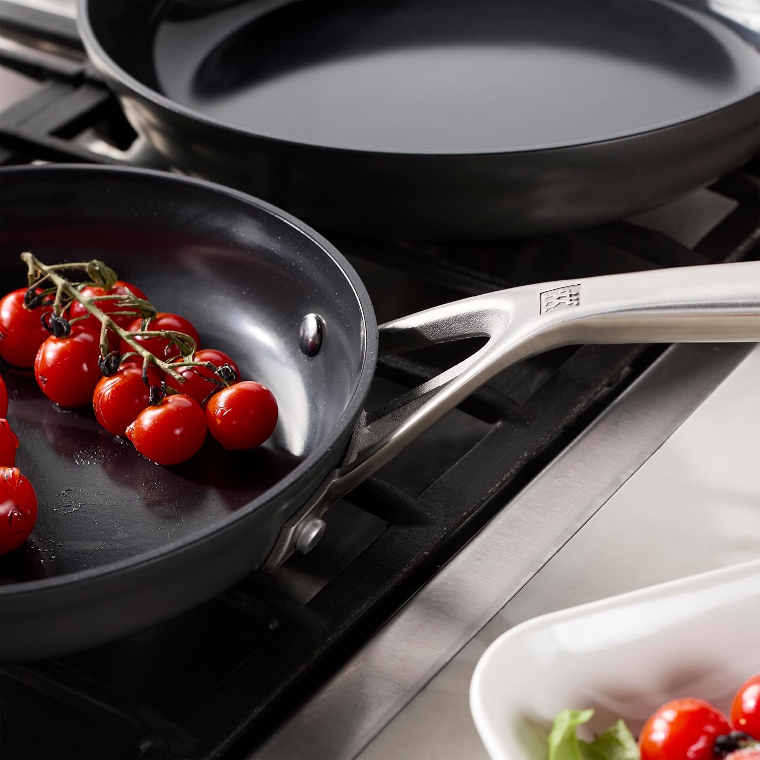 ZWILLING Motion Ceramic nonstick cookware merges the best of Italian design with expert German engineering. Enjoy the high performance of heavy-gauge,hard-anodized aluminum with the convenience of a slick ceramic nonstick coating. Inspired by the elegance of Italian architecture, ZWILLING Motion Ceramic blends quality craftsmanship with modern innovation. Crafted with thoughtful, streamlined details, Motion cookware delivers exceptional performance that lasts. The Ceraforce ceramic nonstick coating is a revolutionary coating designed with responsible materials and is made without the use of PFAS, PFOA, PTFE, lead, and cadmium. The innovative nonstick technology minimizes the need for cooking oil so you can create healthier meals. The durable, heavy-gauge, hard-anodized aluminum construction delivers even heat distribution for exceptional cooking performance. The double-rivet stay-cool handles are designed for easy maneuverability and perfect balance. Dishwasher safe, ZWILLING Motion Ceramic is also easy to clean, making this simple-to-use cookware a pleasure to cook with.