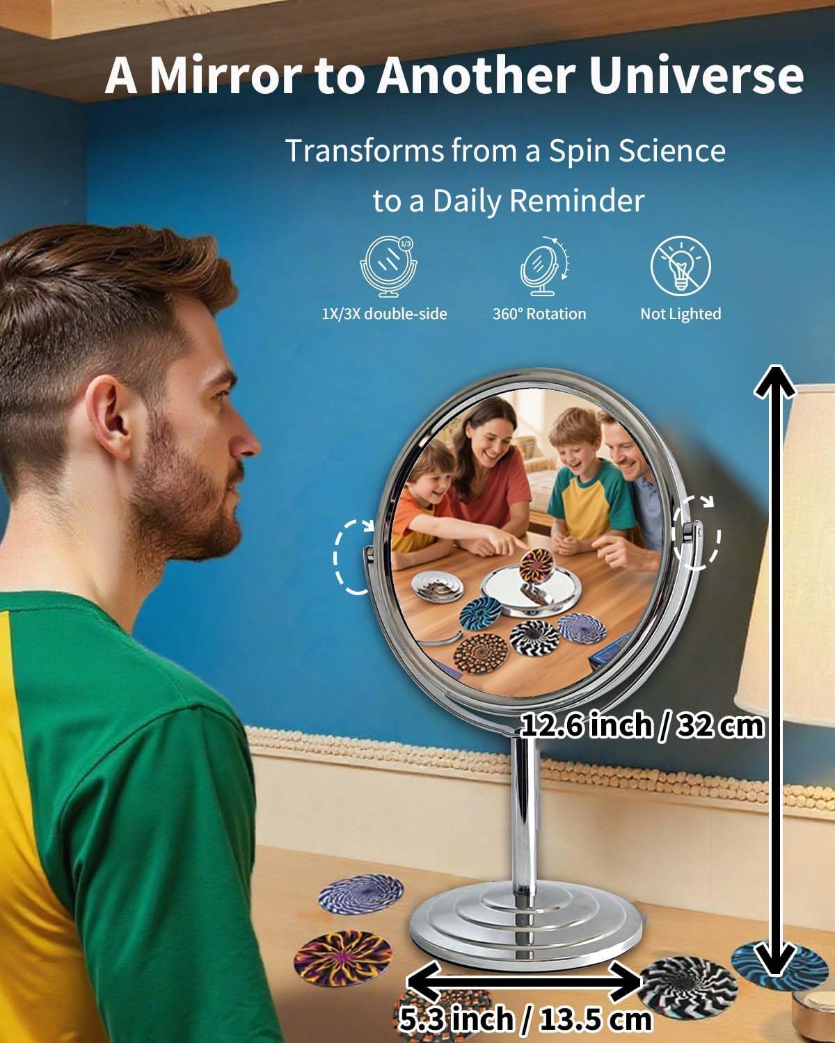 2-in-1 Disk Spin Science & Vanity Makeup Mirror - Create Optical Illusion Spin & Desk Mirror – Spin Kinetic Desk Toys for Home, Office, Education - Physics Toys for Adults & Kids 8+