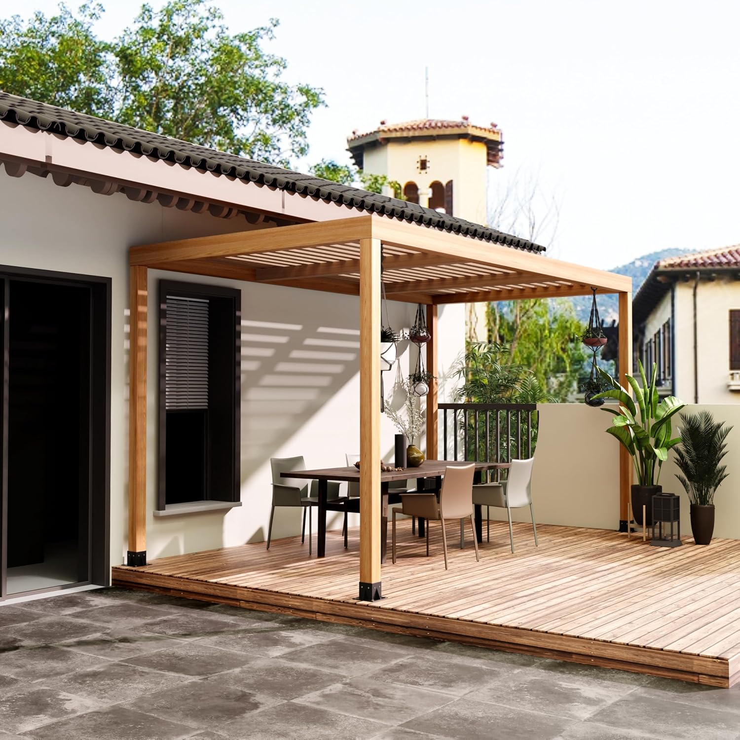 【Advanced Corrosion Protection】 These post bases combine galvanized carbon steel with a powder-coated finish for 300% greater rust resistance. Thrives in extreme climates—scorching heat, downpours, or snowstorms—with virtually maintenance-free durability.