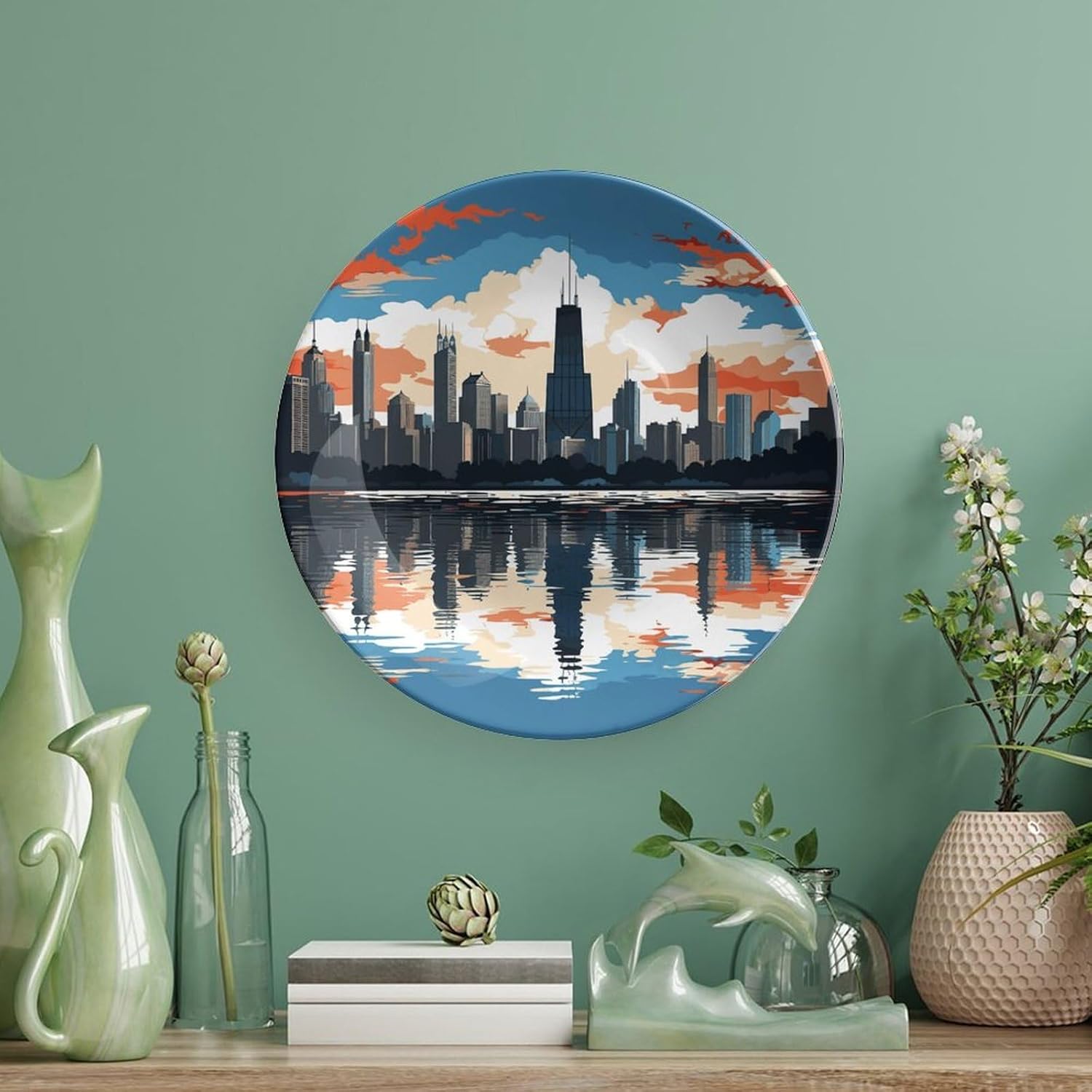 Decorative Plate for Display, Bone China Decorative Plate, Ceramic Dinner Plate with Stand, Vertical Ceramic Plate for Home Office Kitchen Table/Wall Hanging Decor