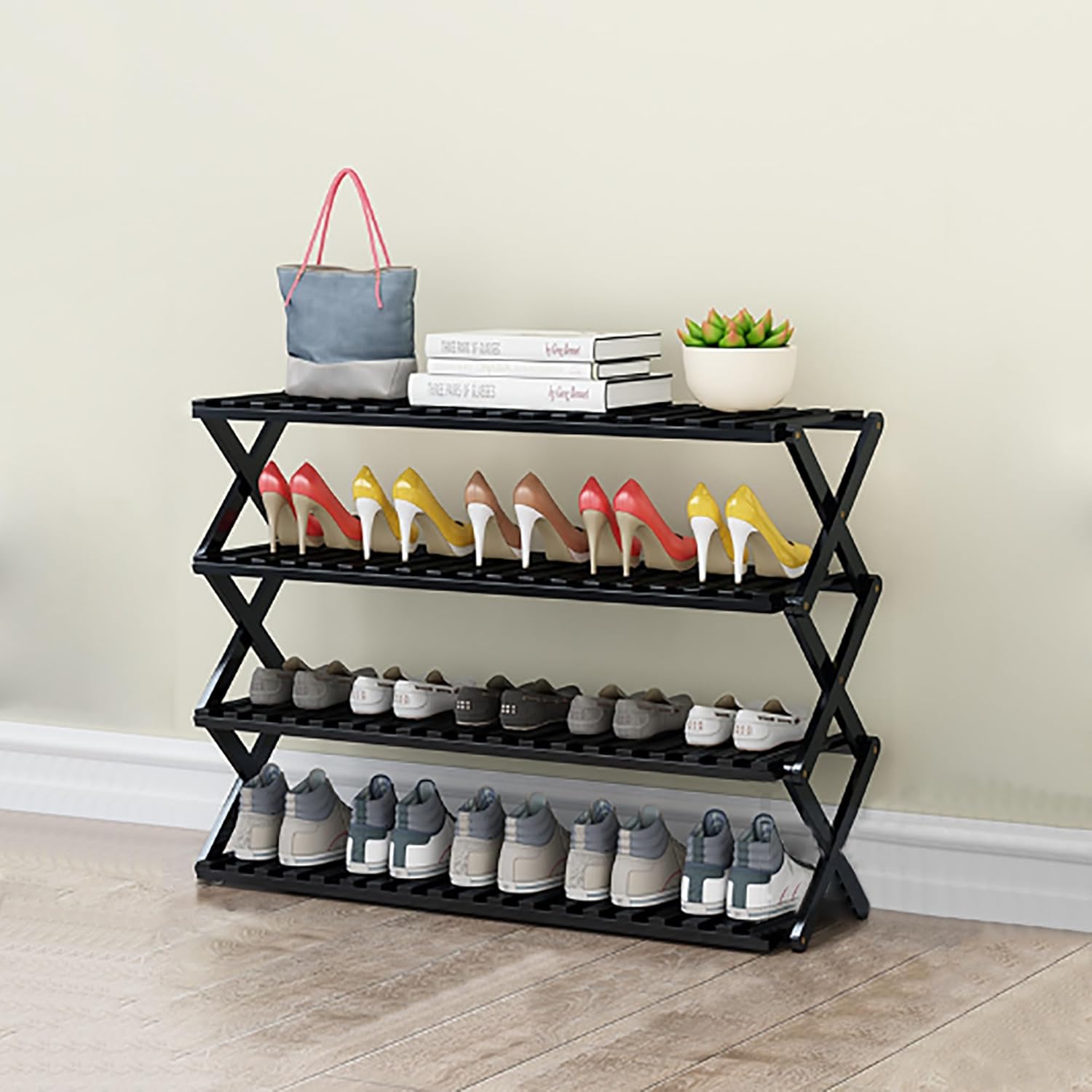 Introducing our versatile floor-to-ceiling multi-layer shoe rack, designed to enhance your home's organization and add style. This innovative storage solution doubles as a convenient shoe stool, making it perfect for both indoor and outdoor spaces. Ideal for living rooms, entryways, and commercial spaces, our shoe rack provides ample space for your footwear while keeping your space organized and clutter-free. Crafted from durable bamboo wood, this shoe rack offers high load-bearing capacity and a creative foldable design, eliminating the need for complex installation. Its sturdy construction allows it to accommodate a variety of storage needs, making it a practical addition to your home. Available in three contemporary colors: black, beige, and light green, this shoe rack will blend in seamlessly with any decor. Choose from multiple sizes to perfectly fit your space: - 50 x 25 x 23 cm - 50 x 25 x 47 cm - 70 x 25 x 47 cm - 100 x 25 x 47 cm For larger storage needs, we also offer options up to 44.48 inches tall, to easily accommodate all your pairs of shoes. Please note that there may be slight variations in dimensions due to manual measurements and that color discrepancies may occur due to lighting and shooting angles. Always refer to the actual product for best representation. Upgrade your storage solutions with our stylish and functional shoe rack, designed to meet your needs while enhancing the aesthetics of your space.