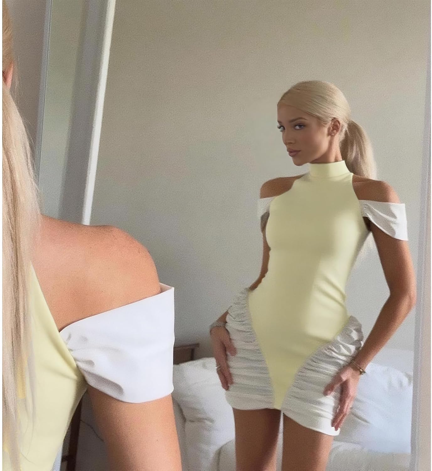 Club Outfits for Women Sexy Clubwear 2025 Sleeveless Mock Neck Color Block Ruched Bodycon Formal Dresses