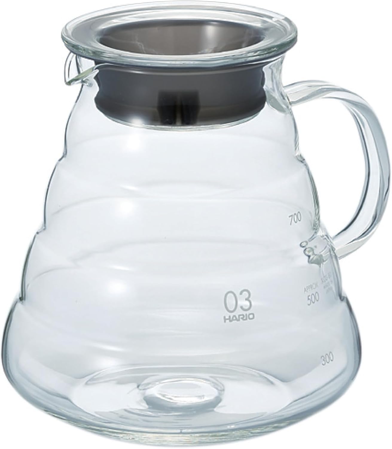 The V60 coffee server has cup display and a poly propylene heat resistant handle and 800 ml capacity.